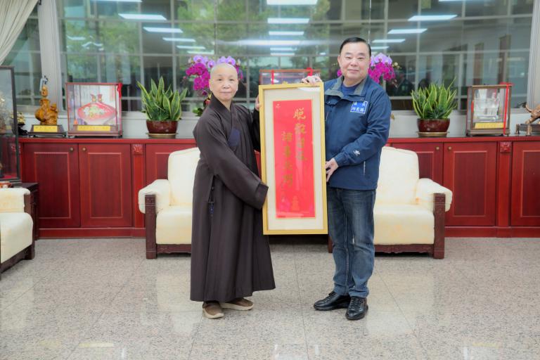 ▲靈鷲山教團訪桃園市議會,致贈新春墨寶並…