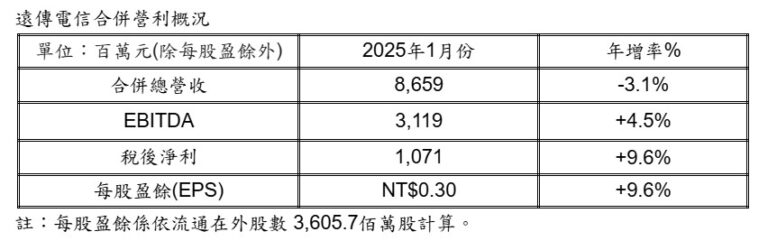 電信三雄2025年1月自結獲利出爐!中華電信…