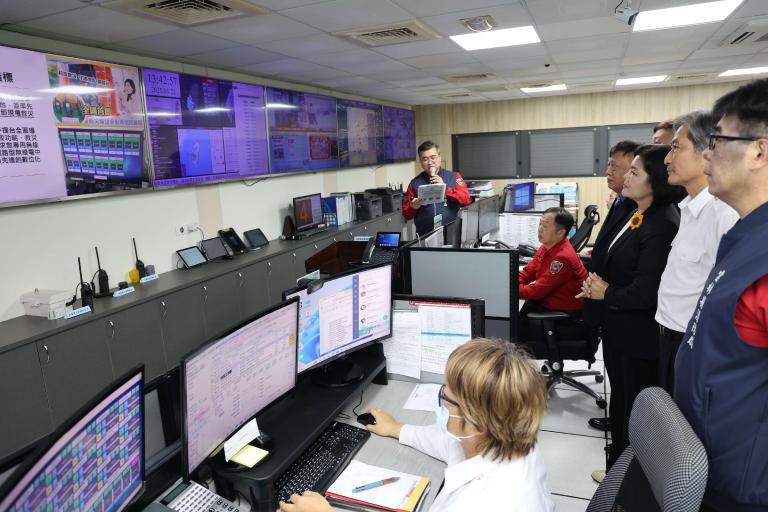 ▲代理市長邱臣遠於年節前特別前往消防局朝…