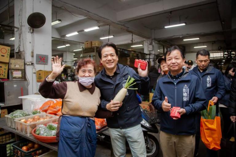▲代理市長邱臣遠赴新竹果菜市場發送「幸福…