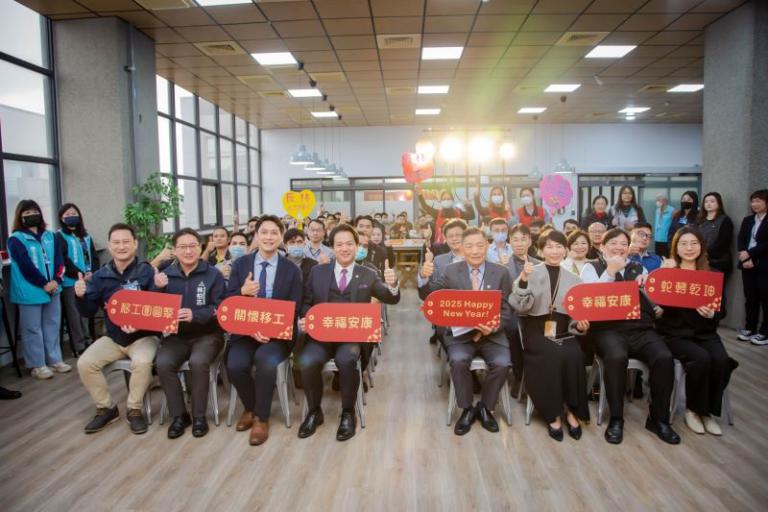 ▲代理市長邱臣遠與外籍移工大合照。(圖/記…