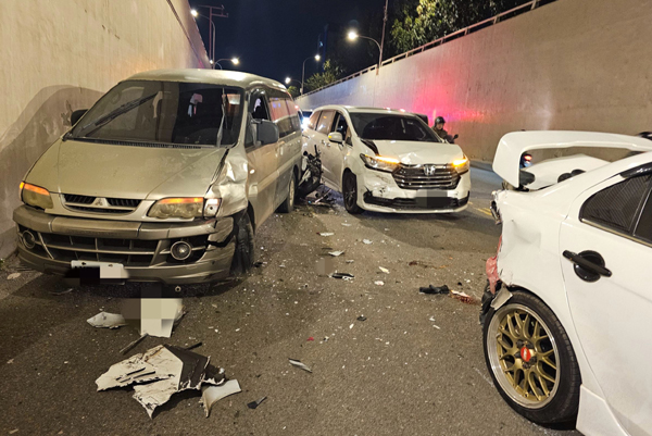 ▲桃園市中壢區普忠路地下道,四部自小客和…
