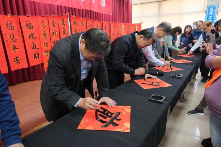 ▲跨派系民代與邱議瑩「台灣尚勇贏新年」。…