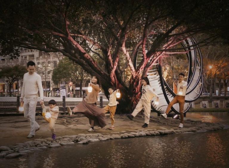 ▲2025竹北光節「水生繁花」夜晚展現璀璨光…