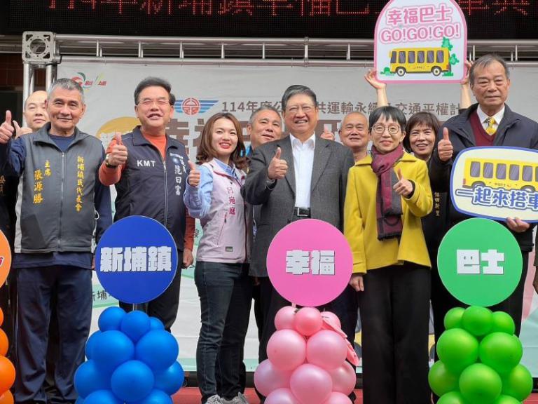▲新埔鎮幸福巴士今舉行通車典禮。 (圖/記…