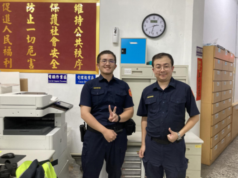 ▲大湖派出所警員張庭綱(左)、蕭政湘(右。…