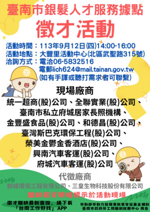 ▲9月12日 (四) 14:00-16:00臺南市銀髮人才…