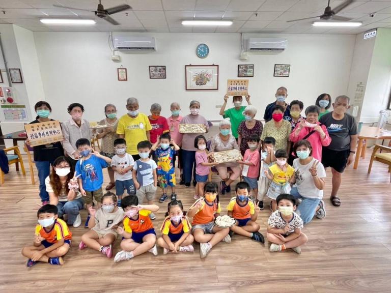 ▲日照中心長者和幼兒園小朋友DIY包水餃,並…