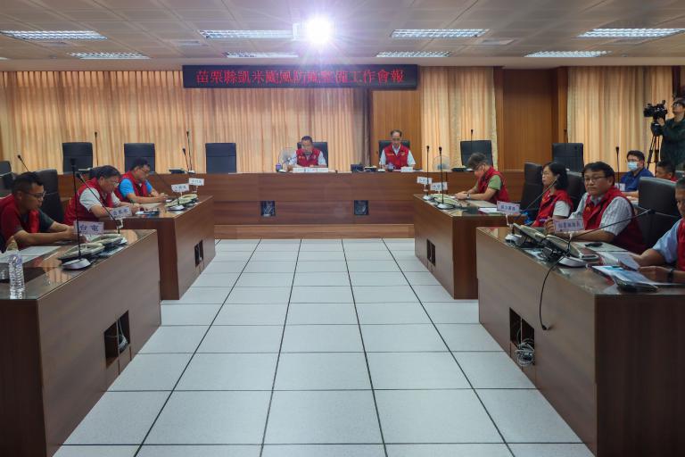 ▲中颱凱米颱風逐漸逼近台灣,苗栗縣政府在…