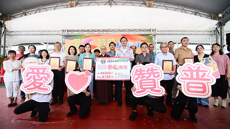▲靈鷲山佛教基金會愛心捐贈儀式,張善政市…