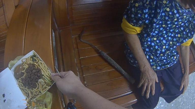 ▲員警莊雅萍擔心老嫗整夜未進食體力不支,…