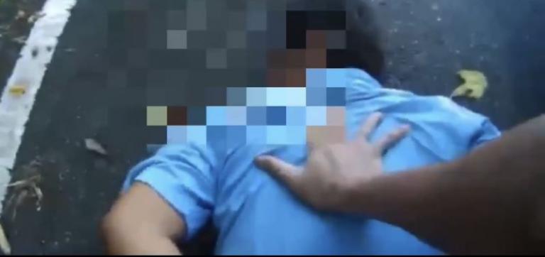 ▲員警一個箭步上前,將呂姓通緝犯壓制在地…