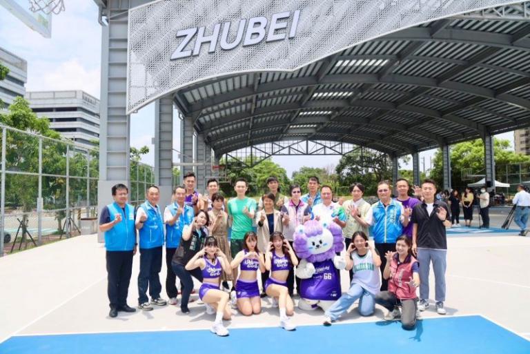 ▲竹北市公所打造的第一座風雨籃球場今正式…