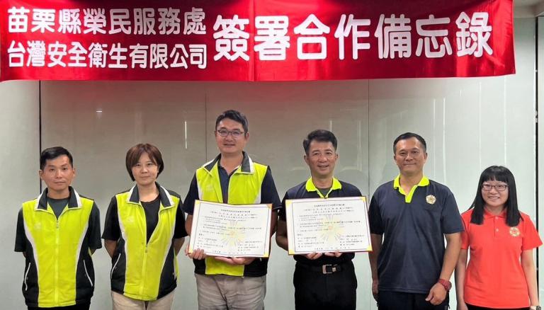 ▲苗栗縣榮服處陳立中處長(右3)與台灣安全…