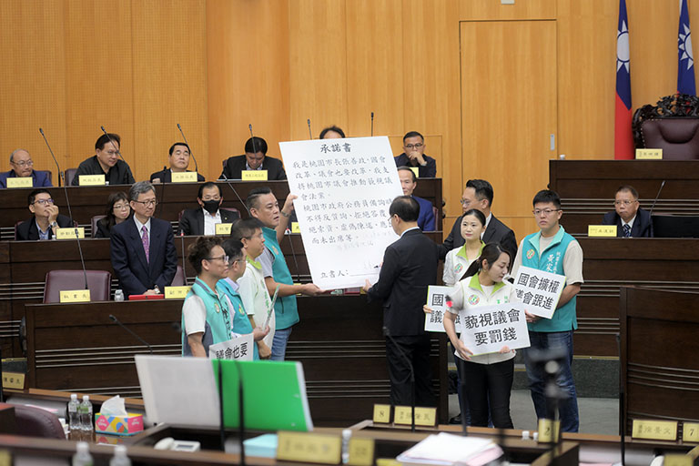 ▲桃議會民進黨團推藐視議會法案,要求張善…