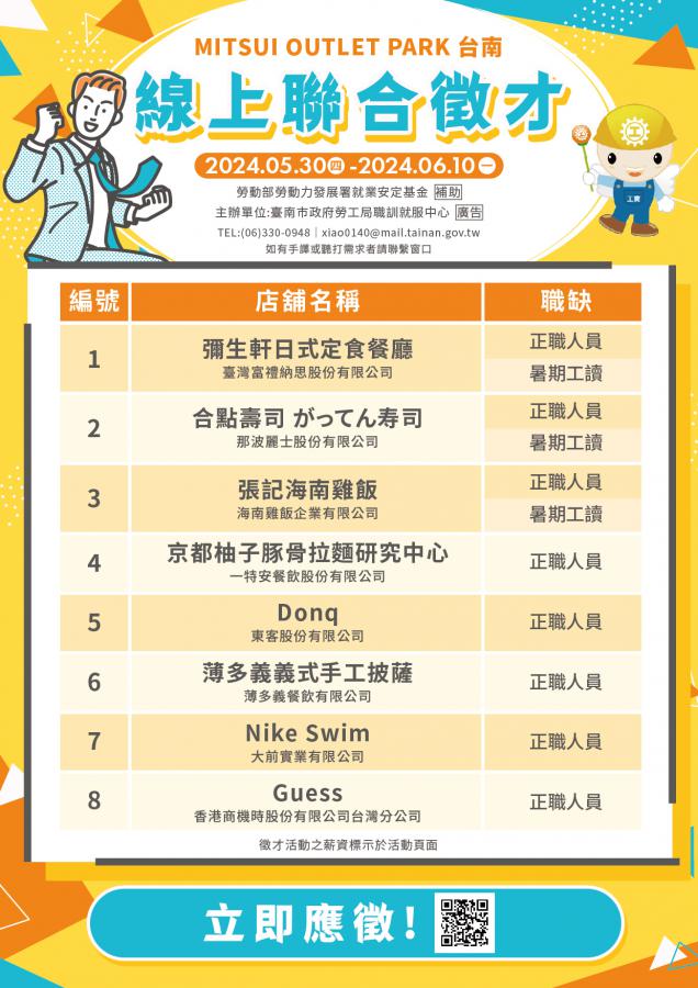 ▲MITSUI OUTLET PARK 台南線上聯合徵才-…