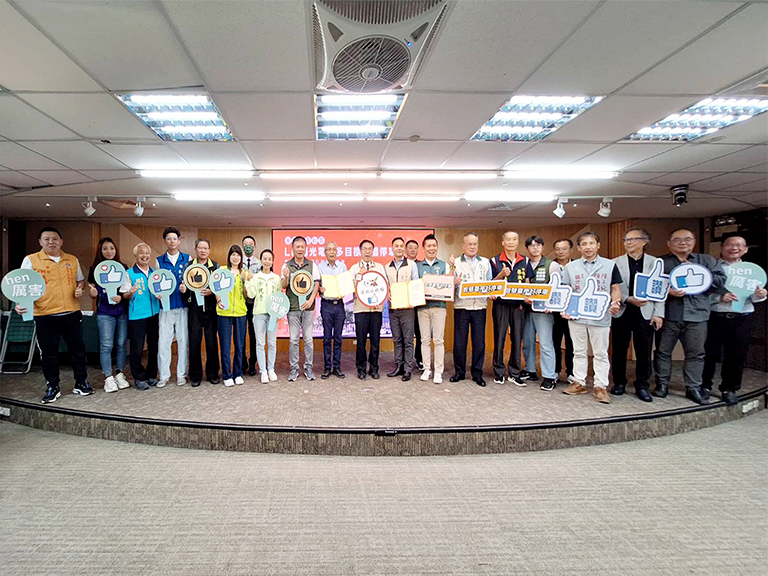 ▲處長陳立中(前中)感謝大湖鄉長黃惠琴(前…
