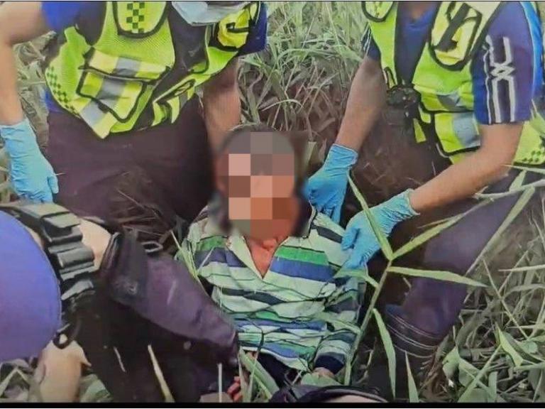▲員警獲報立即前往果發現一男子倒臥在堤防…