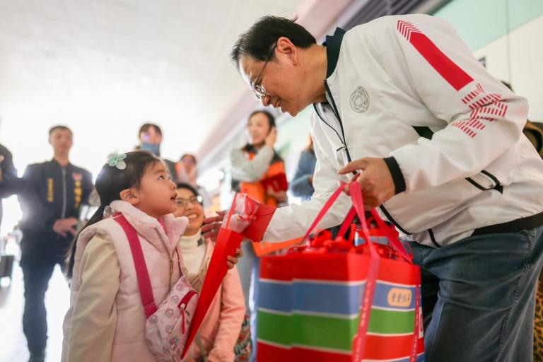 ▲張市長視察春節疏運 致贈巧克力花束溫暖…