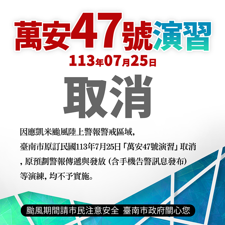 ▲台南、高雄、屏東7/25「萬安演習」取消。…