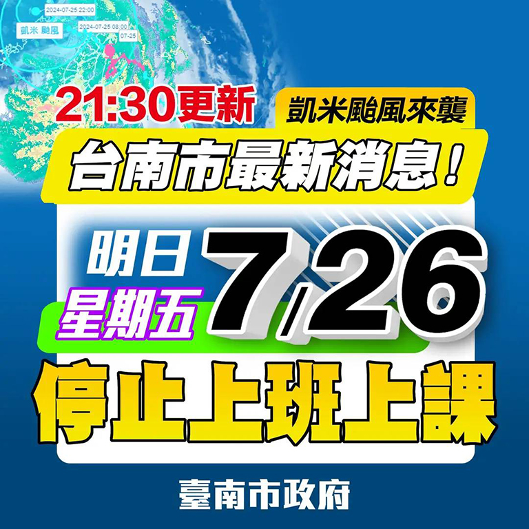 ▲台南市明(25)日停止上班、停止上課!黃…