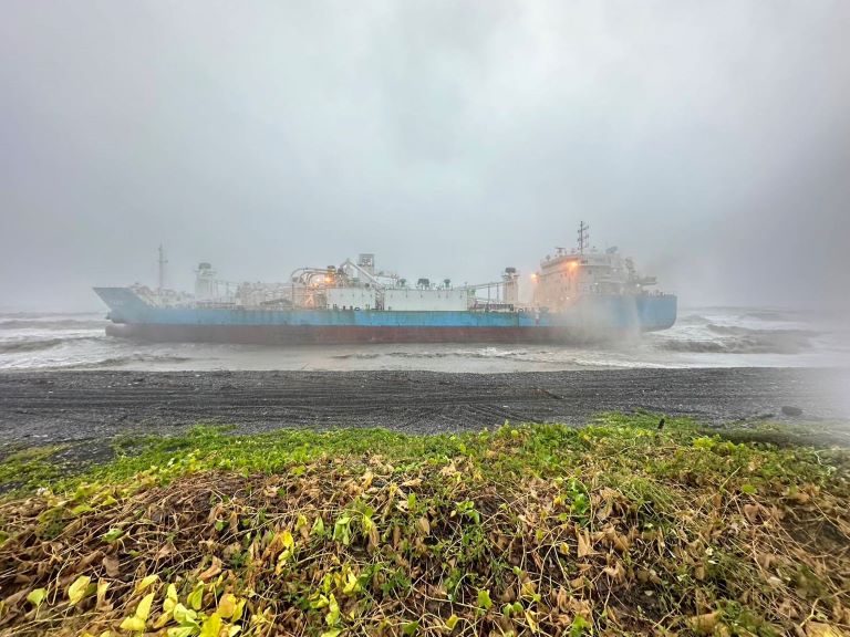 印尼籍伊莉安娜 加祿堂下錨後擱淺沙灘