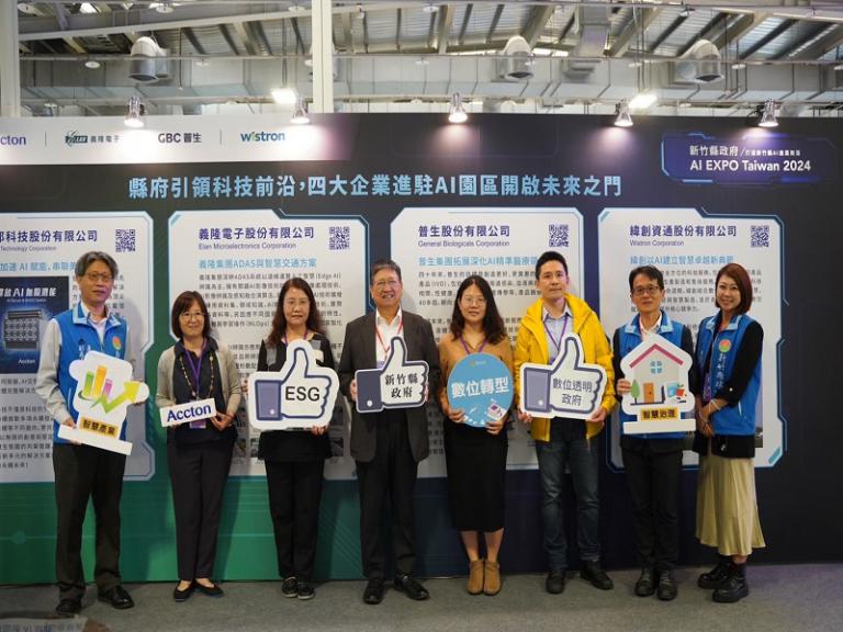 ▲新竹縣長楊文科與四大廠商:緯創資通、普…