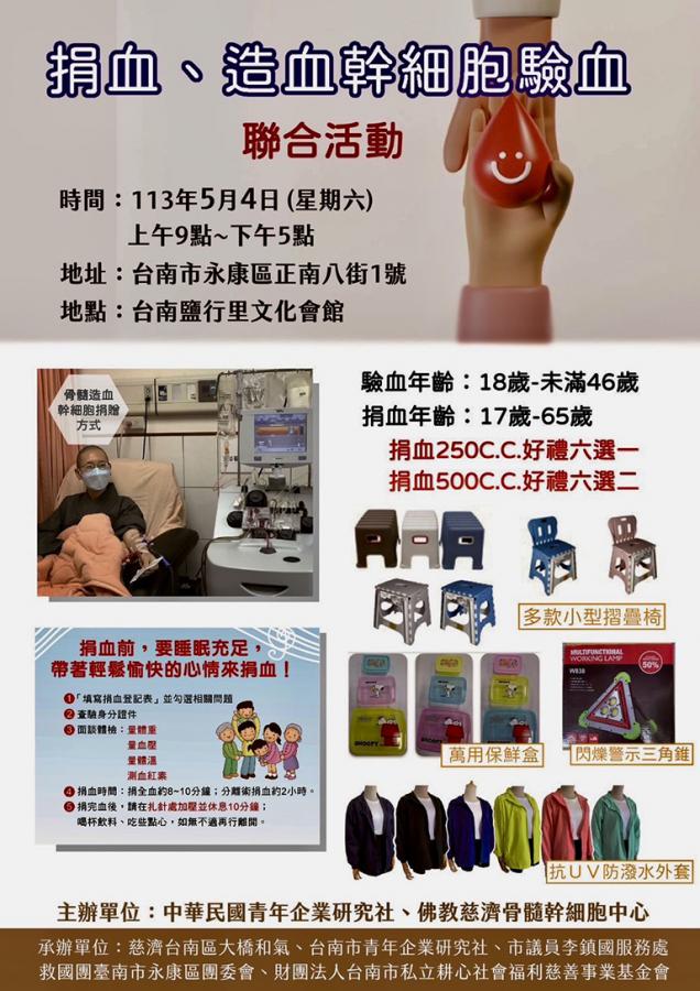 ▲台南市青年企業研究社與慈濟骨髓幹細胞中…
