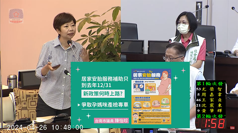 ▲陳怡珍為孕媽咪請命。(圖/臺南市議會) …