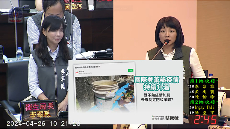 ▲台南登革熱已累積24例!蔡筱薇憂「星星之…