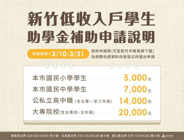 ▲新竹市政府提供「低收入戶學生助學金」說…