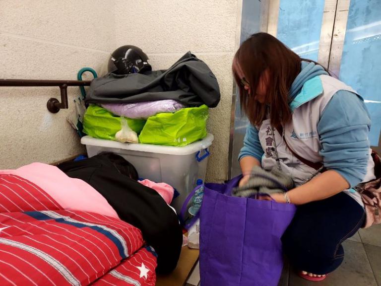▲新竹市社工發送圍巾、外套、手套暖暖包溫…