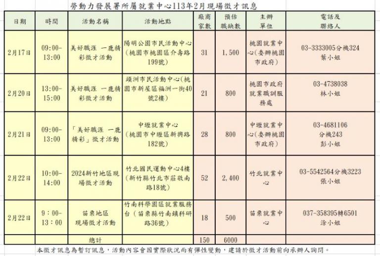 ▲桃竹苗分署2月份在桃園、中壢、新竹、苗…