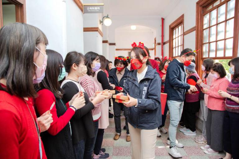 ▲新湖國小校長扮財神迎春慶開學 內湖波麗…