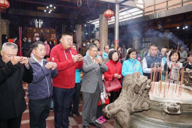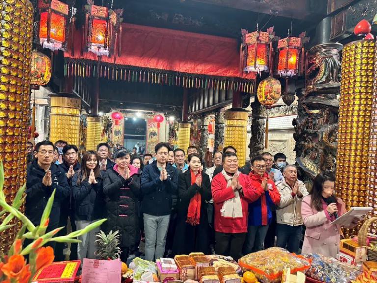▲臺南市長黃偉哲除夕夜到開基玉皇宮參拜,…