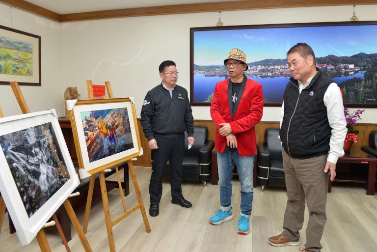 ▲縣長鍾東錦表揚苗栗縣籍攝影師曾進發先生…