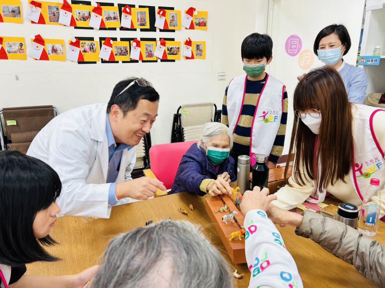 ▲部苗徐國芳院長(左上)到場關懷長者,並陪…