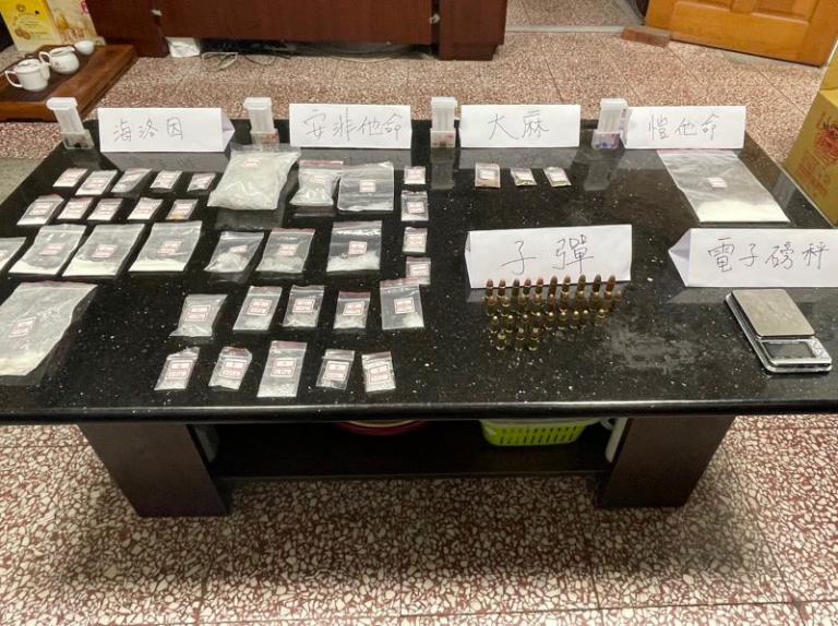 ▲竹東分局於嫌疑人家中起獲大量毒品,及制…