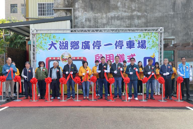 ▲大湖鄉公所旁廣停一停車場6日上午正式剪…