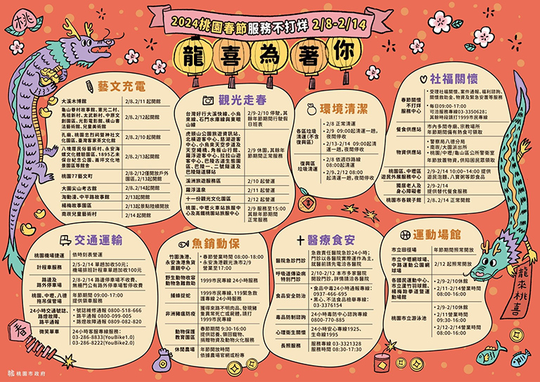 ▲桃市春節8大貼心服務不打烊「龍喜為著你…