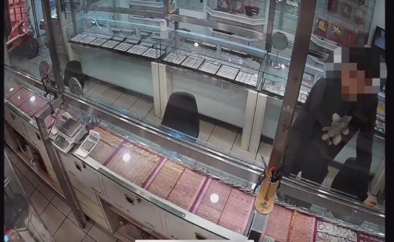 ▲彭姓犯嫌於店家交付2條金項鍊供犯嫌觀賞…