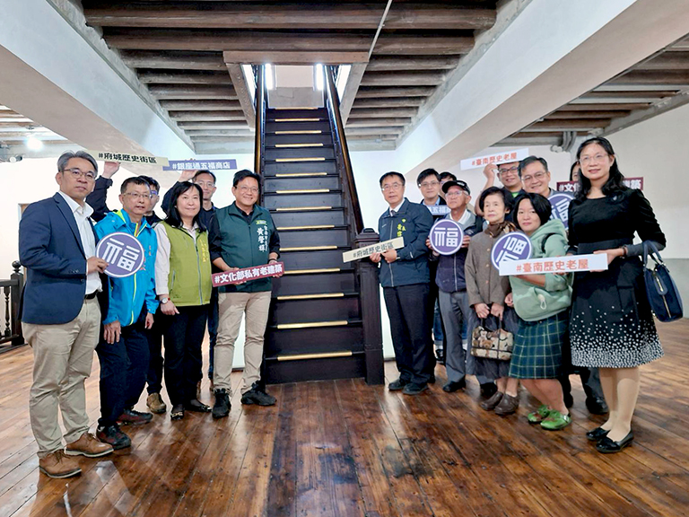 ▲黃偉哲視察修復完成的95年歷史街屋「五福…