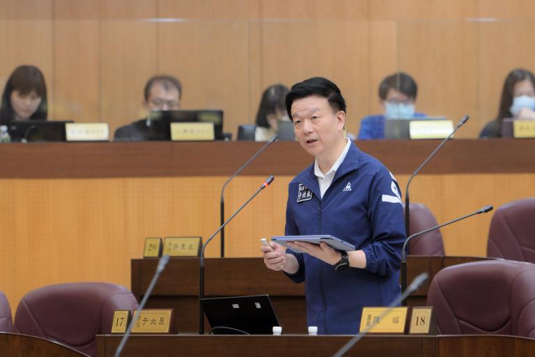 ▲台南市議員李文俊16日進行市政總質詢。(…