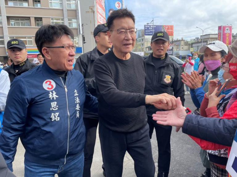 ▲趙少康抵達林思銘競選總部,受到總部志工…
