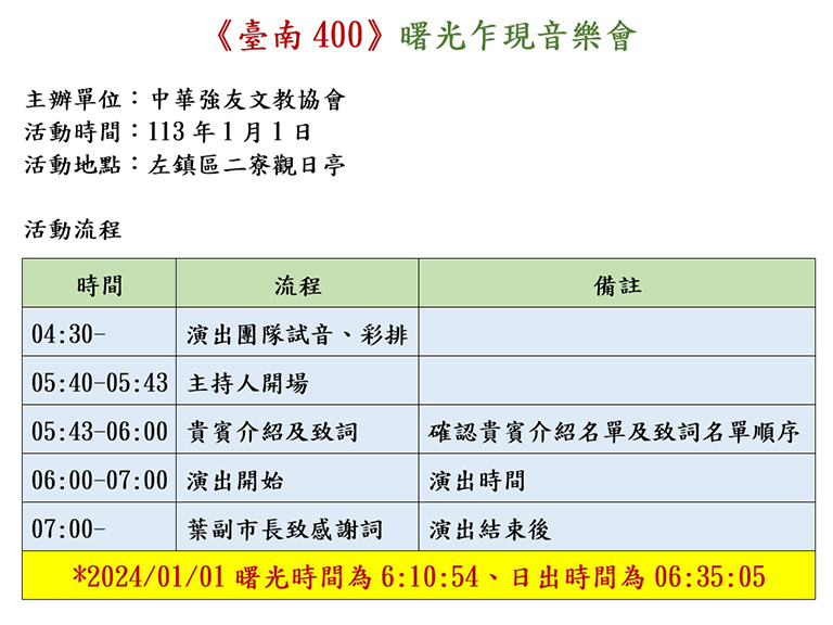 ▲《臺南400曙光乍現-日出音樂會》,將於11…