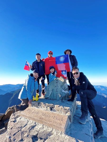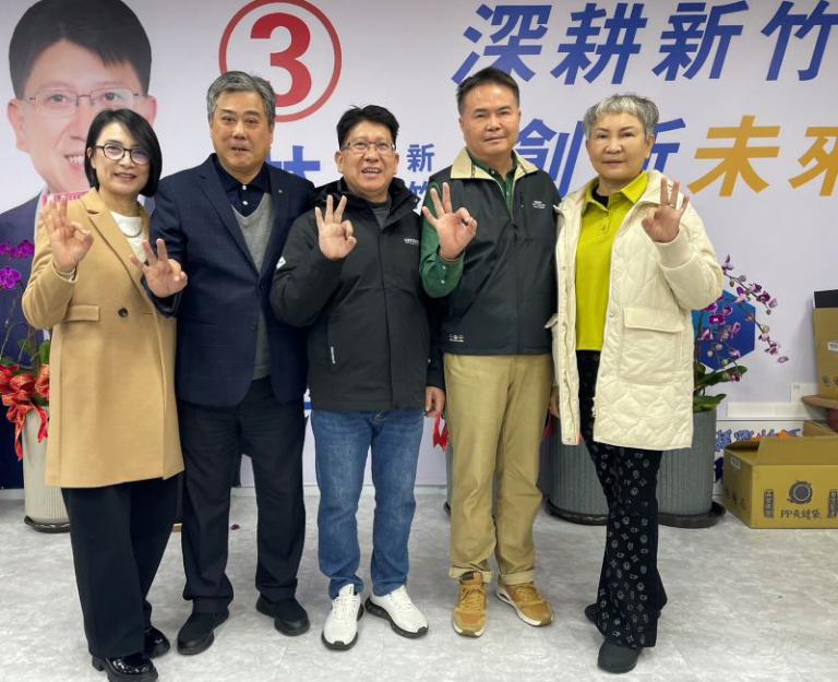▲竹東鎮代表麥美芝與親友六人攜帶國旗順利…