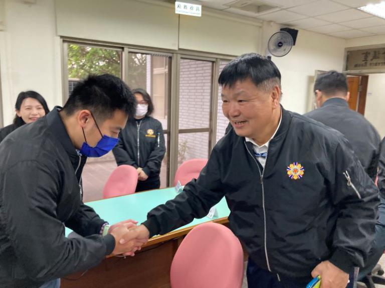 ▲李副主委親切問候新竹榮服處職員工。(圖/…