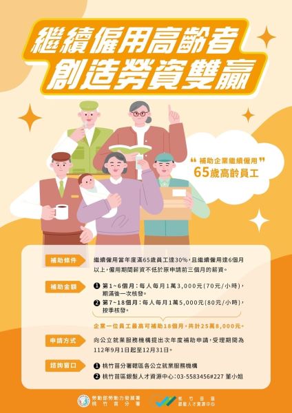 ▲繼續僱用高齡者補助計畫海報。(圖/記者蔣…