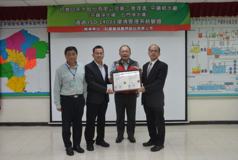 ▲由格瑞國際驗證公司陳文俊總經理授證台水…
