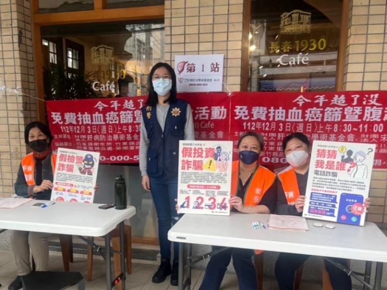 ▲竹東警分局利用抽血癌篩活動現場向等待篩…
